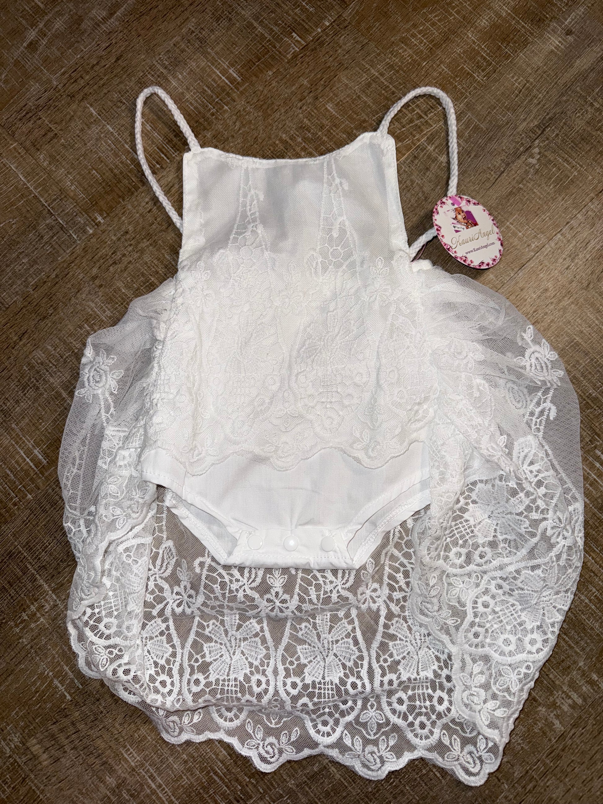 Kauri Angel (6-9 Months) Brand New White Onesie with Sheer Embroidered Skirt